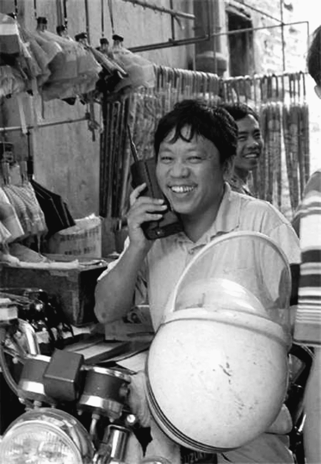 我觉得这张照片很有意思:广州手持大哥大的这位市民的心情或许就如同我们第一次拿到智能手机时的心情吧哈哈。