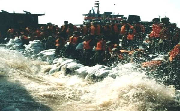 98 年洪水中的抗洪官兵们