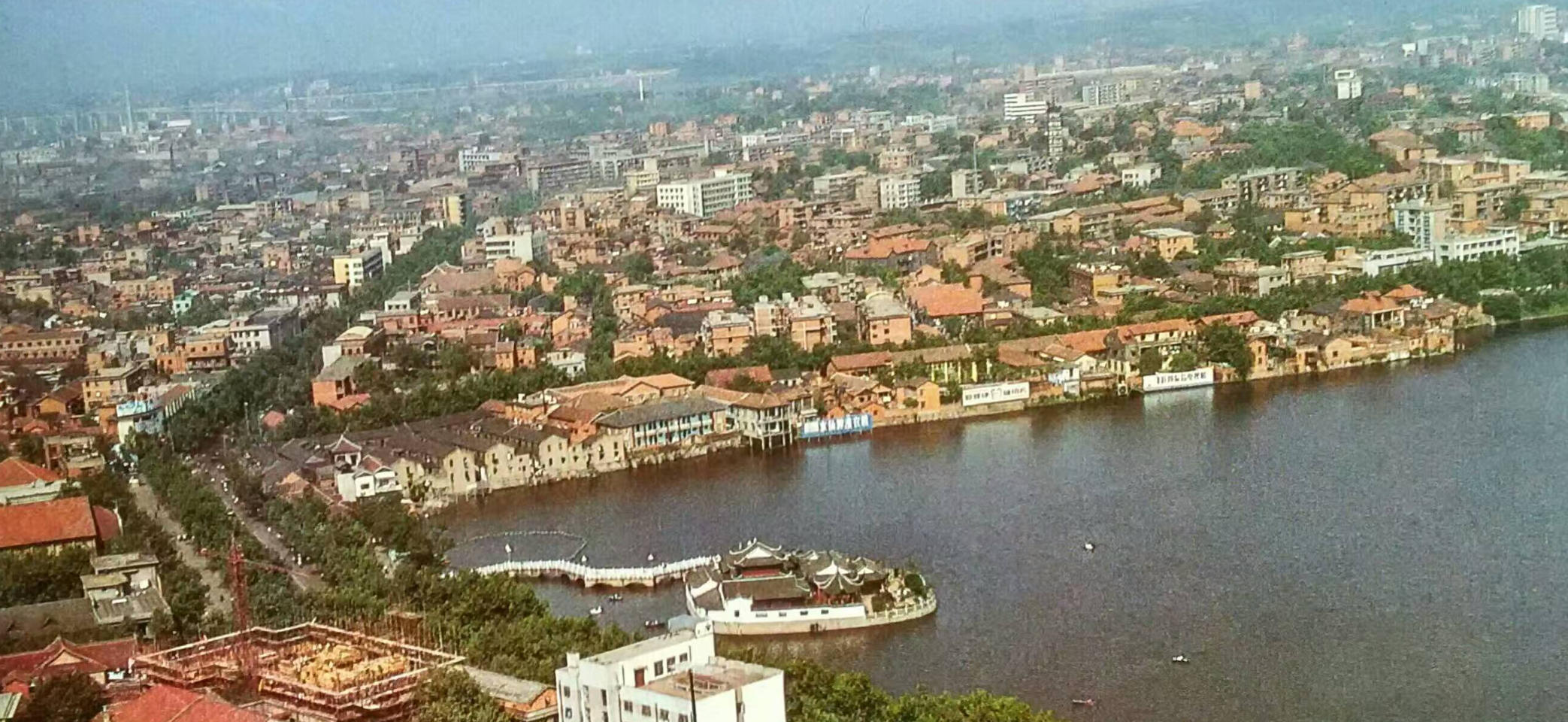如今的两湖周围高楼耸立 |